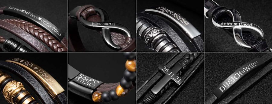 Entdecken Sie unsere exklusive Kollektion von Lederarmbändern mit Gravur! Jedes Armband wird zu einem einzigartigen Schmuckstück, das Ihre Persönlichkeit und Ihren Stil perfekt zum Ausdruck bringt.