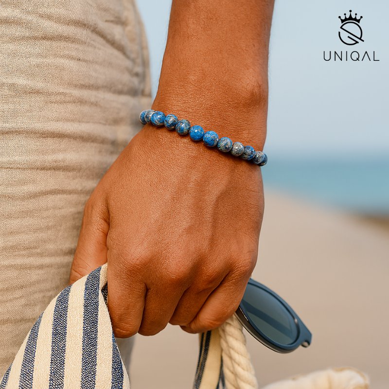 Erleben Sie die harmonisierende Kraft des Uniqal Edelsteinarmbands aus echtem Sodalit (8 mm) – ein edles Schmuckstück, das Ruhe, Klarheit und Lebensenergie in Einklang bringt.