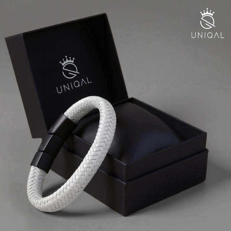SNOWFLAKE von Uniqal verkörpert Leichtigkeit, Ausgeglichenheit und modernen Minimalismus. Gefertigt aus hochwertigem, handgeflochtenem Echtleder, bringt es den klaren, frischen Stil des Sommers direkt an dein Handgelenk.