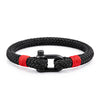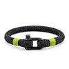 The maritime bracelet "MAST" radiates the powerful elegance of a majestic sail mast. Made from finely braided, slightly stretchable black ropes and refined with a sturdy black stainless steel clasp wrapped in a light green rope, it fascinates with its fresh and dynamic aura.
