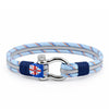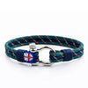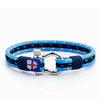Discover the unique maritime bracelet "OASIS" by UNIQAL, crafted from three sailing rope strands in deep dark blue and vibrant light blue, artfully bound to the shackle closure with dark blue sailing rope. This bracelet combines the sublime grace and powerful aura of the ocean in a unique fusion of colors and materials.