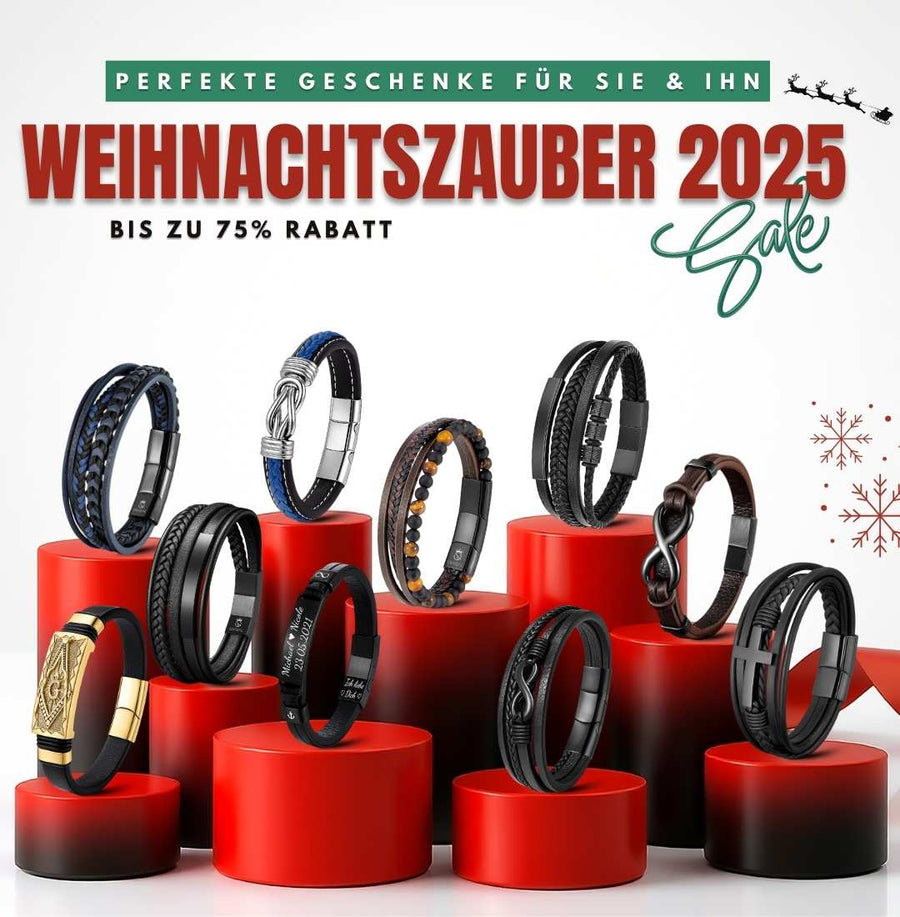Armband mit Gravur Herren Leder uniqal Schwarzes Lederarmband Herren von Uniqal, geflochtenes Premium-Design mit Edelstahlverschluss