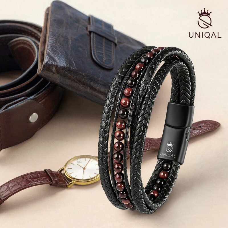 Commandez votre bracelet dès aujourd'hui et découvrez l'énergie puissante des pierres en œil de tigre rouge combinée à l'élégance luxueuse du cuir véritable.
